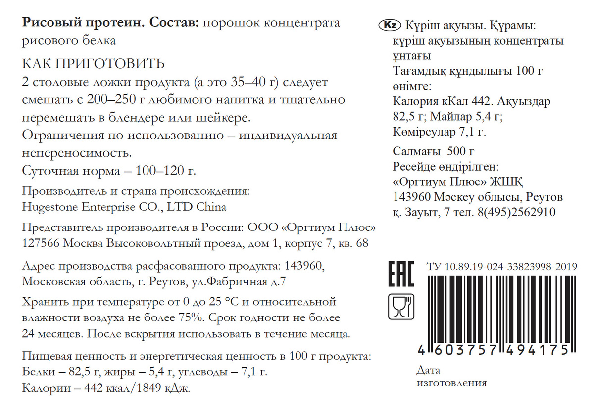 - Вид протеина Вегетарианский