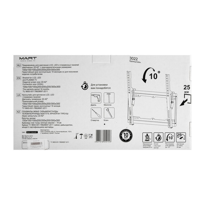 • Настенное крепление (VESA) 100x100 мм, 300x300 мм