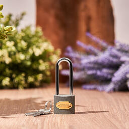 Навесной замок из чугуна высокой степени надежности с 3 ключами 32 мм (длинная дужка)