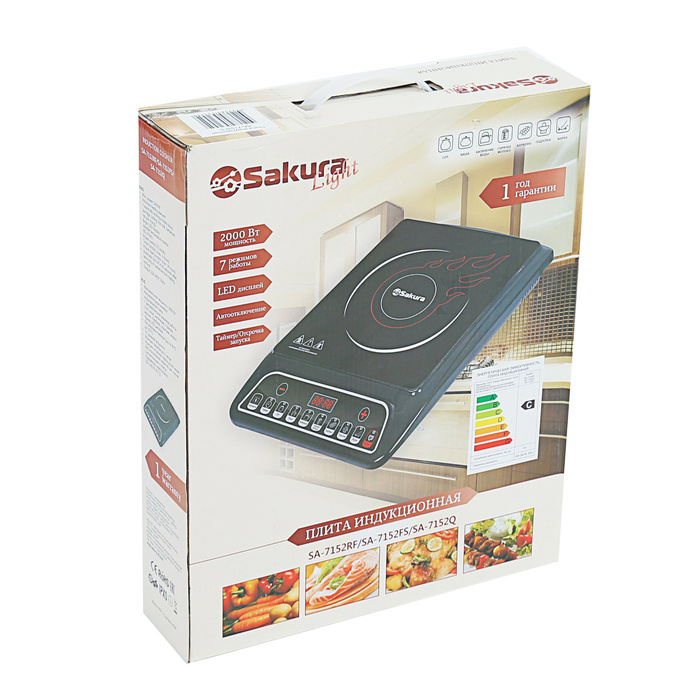 Настольная плита Sakura Плитка индукционная SA-7152FS, 2000 Вт, 1 конфорка, чёрная, черный