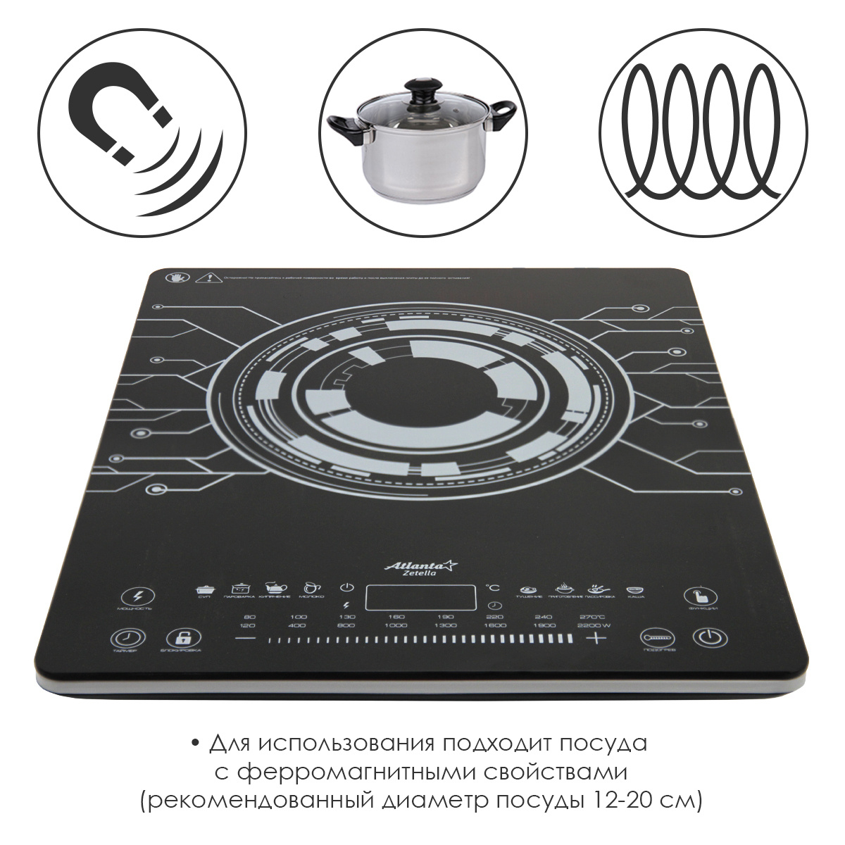 Индукционная Настольная плита Atlanta ATH-1760 (black) Электроплита индукционная, черный