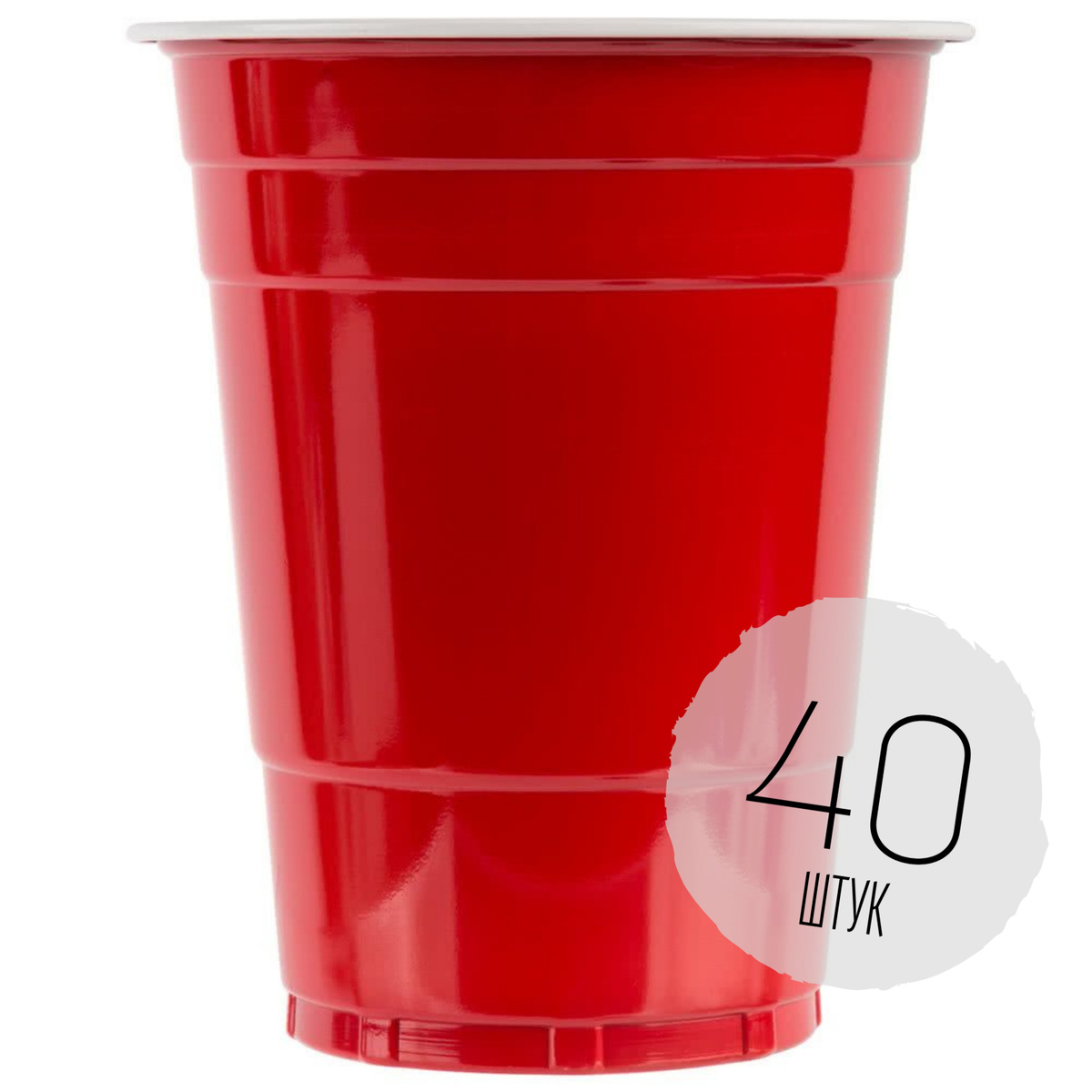 Стаканчики красные одноразовые в американском стиле/ red cups/ party caps/ 0.5/ ПЭТ/ 40 шт.