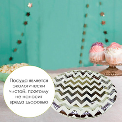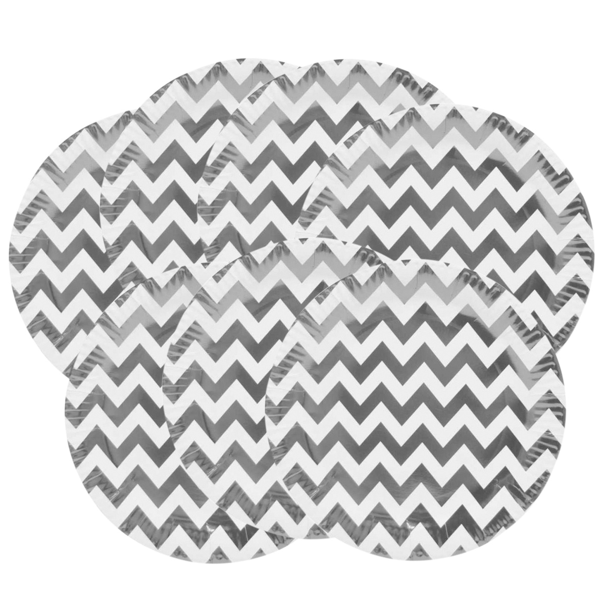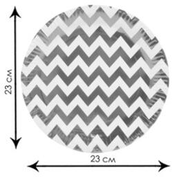 Набор одноразовых праздничных тарелок Серебристый зигзаг, из картона, 10 штук, серебристый, диаметр 23 см DP-PLT-20