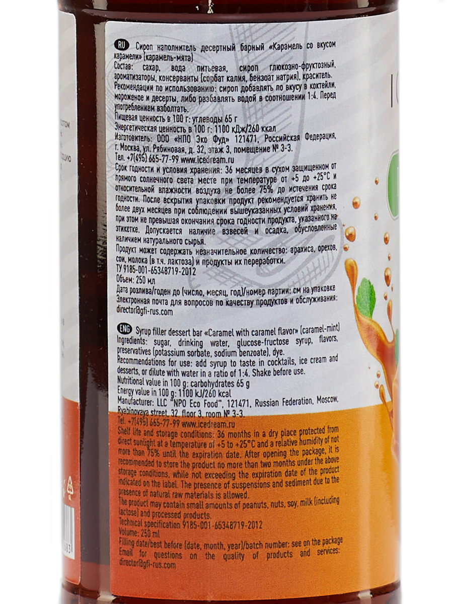 Сироп Мятная карамель для кофе, чая, коктейлей, какао, десертов, стеклянная бутылка, 250 мл (0,25 л) Icedream (Айсдрим)