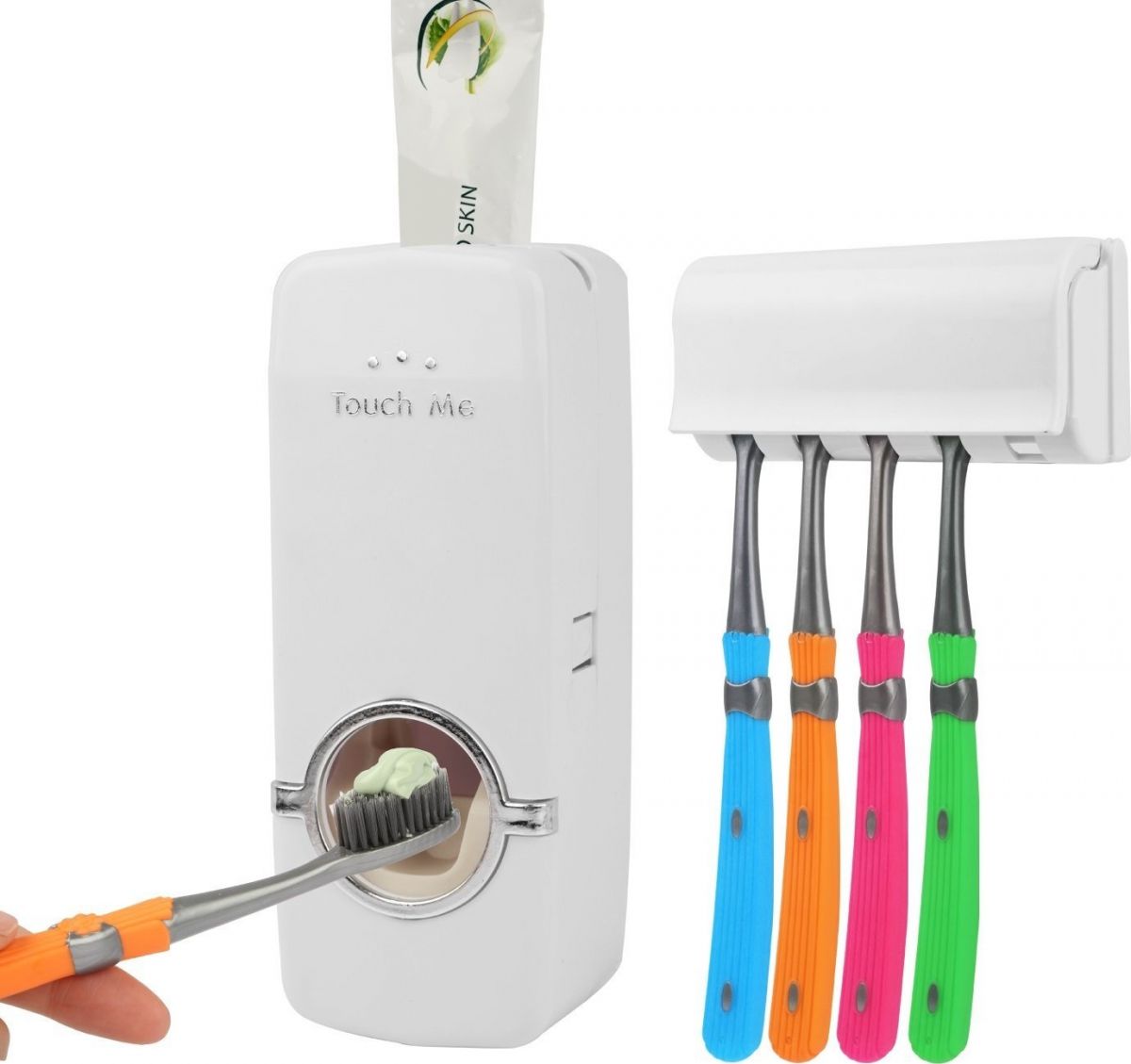 Диспенсер для зубной пасты Homsu, с держателем на 5 зубных щеток, цвет: белый