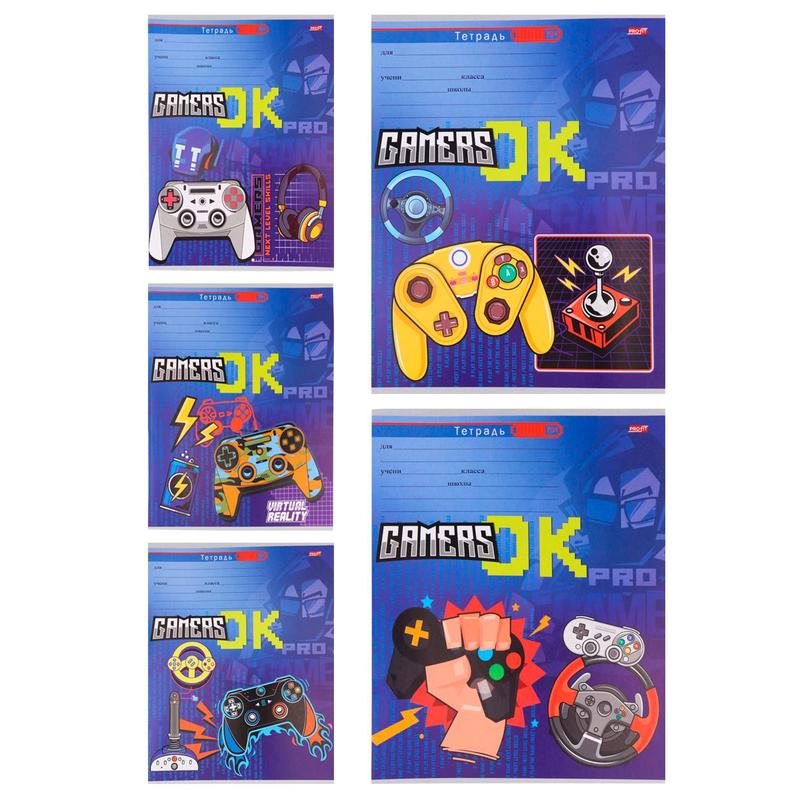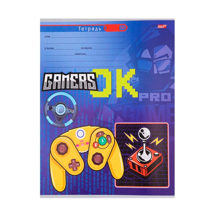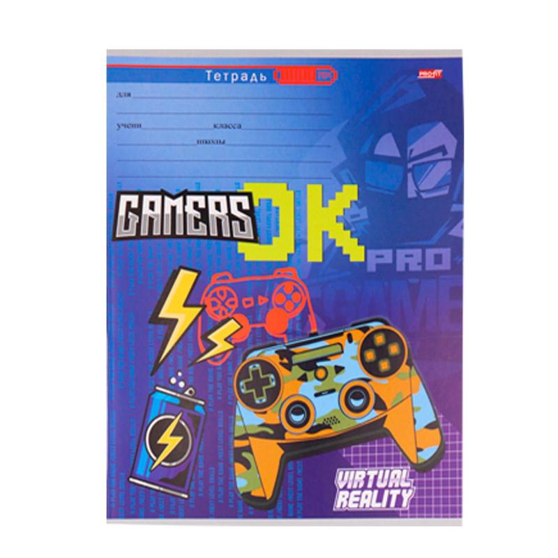Тетрадь школьная Проф-пресс Хардкорный геймер А5 12 листов в косую линейку с дополнительным горизонтом (обложка в ассортименте)