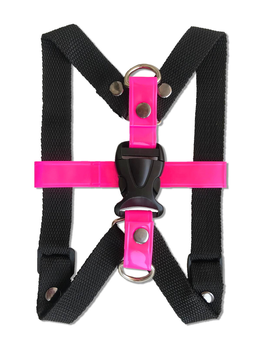Шлейка светоотражающая для собак Petsare обхват груди 32-46 см, черно-розовый