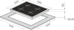 Индикатор остаточного тепла укажет, какая из варочных зон ещё горячая. Детектор диаметра посуды экономит электроэнергию, нагревая только необходимую полезную поверхность конфорки. Автоматическое отключение в случае перегрева, долгого простоя работающей конфорки и при намокании поверхности варочной панели.