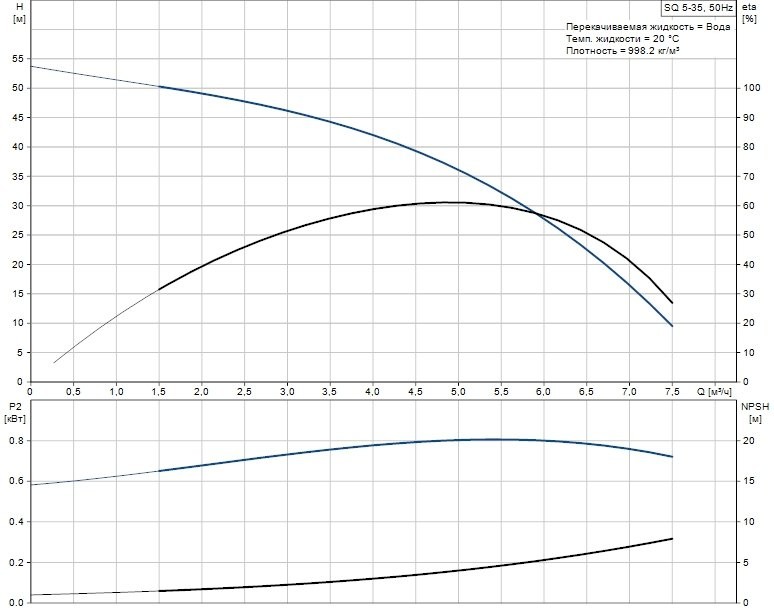 - Диаметр насоса, мм (дюймов) 74 (3")