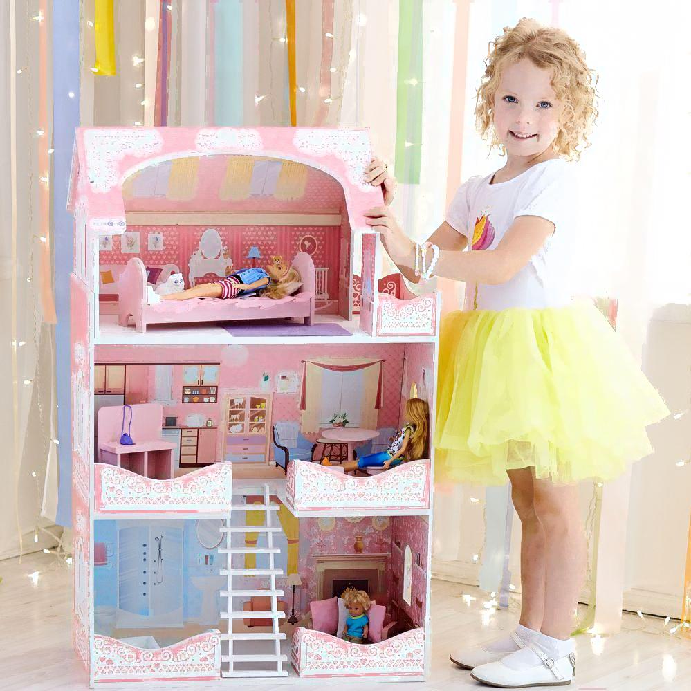 • Комплектация кукольного домика/румбокса кровать, обеденный стол, стул, диван, кухня, джакузи