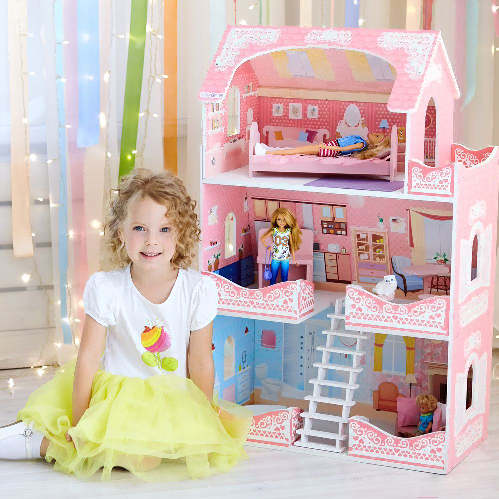 • Комплектация кукольного домика кровать, обеденный стол, стул, диван, кухня, джакузи