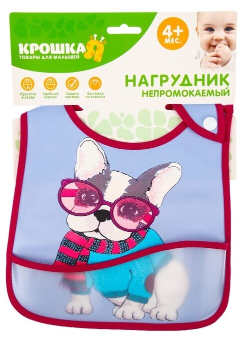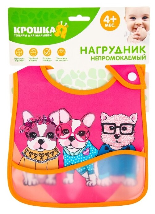Крошка Я Нагрудник «Модняшка / Три друга», непромокаемый, на кнопках, с карманом
