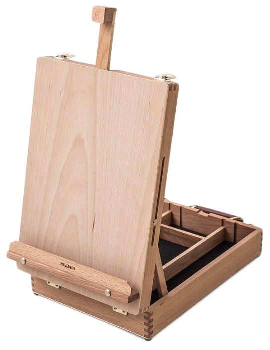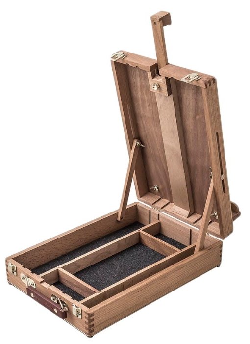 Дополнительная информацияустойчив к влаге и коррозии, с регулируемой полкой для холста, с внутренним ящиком для красок и инструментов, с ручкой для переноски; габариты ящика - 26 х 37 х 9 см