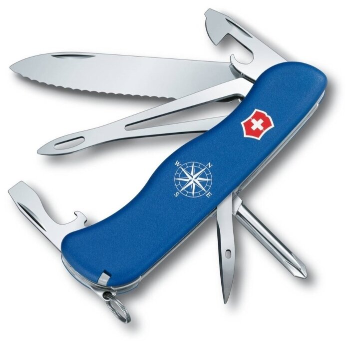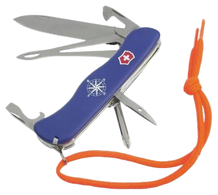 - Инструменты (функции) большое фиксирующееся лезвие с волнообразной заточкой крестовая отвертка консервный нож маленькая отвёртка открывалка для бутылок отвёртка инструмент для снятия изоляции шило кольцо для ключей со шнурком пинцет зубочистка соединительная скоба приспособление для вязания морских узлов