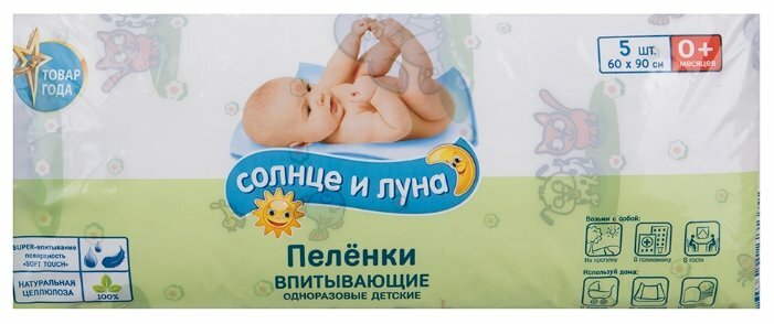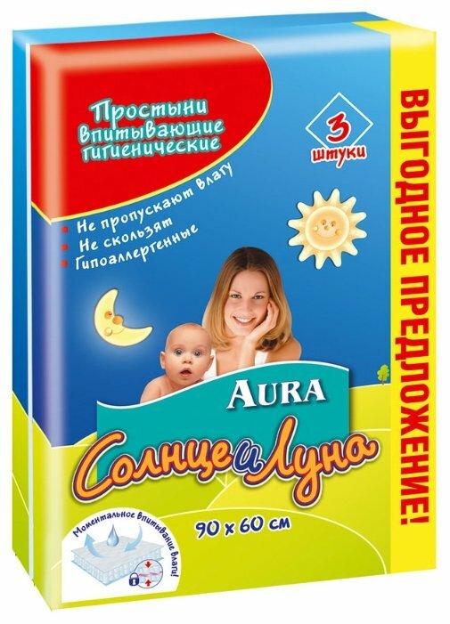 Одноразовые пеленки Aura Солнце и Луна 60х90