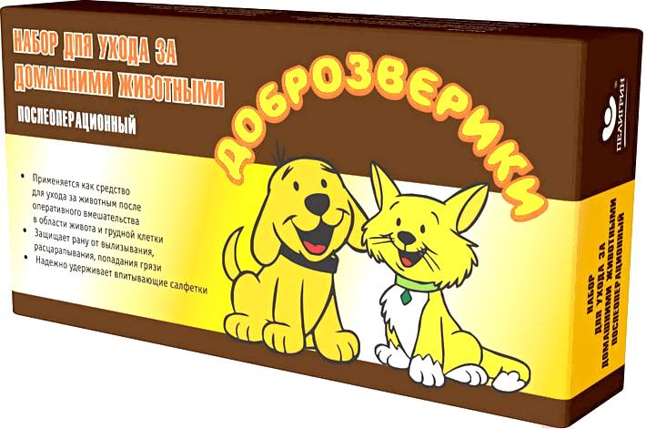 - В комплекте впитывающие стерильные салфетки, одноразовая пеленка, попона послеоперационная (2 шт.)