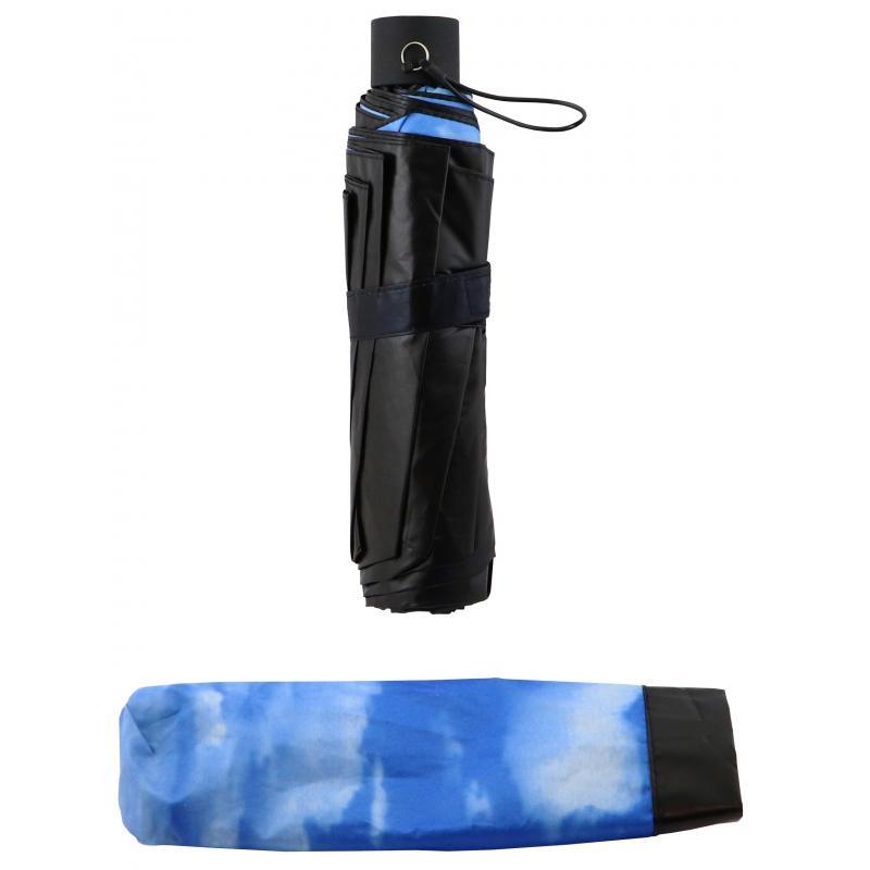 Механический зонт двойного сложения с восемью металлическими спицами изготовлен из качественного нейлона с водоотталкивающей пропиткой. Поверхность купола покрыта черной непроницаемой тканью, внутренняя сторона имеет рисунок голубого неба с облаками. Чехол тканевый черный с голубой оторочкой. Подарок-пожелание, чтобы в самую лютую непогоду небо над вами оставалось ясным и чистым.