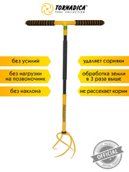 Ручной культиватор торнадика, корнеудалитель с мягкими ручками-грипсами в комплекте, для разрыхления почвы любой плотности и устранения сорняков TOR001