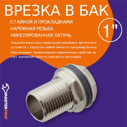 Штуцер (врезка) в бак (емкость) с прокладкой 1", латунь