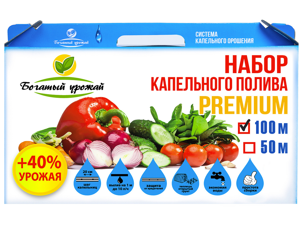 Система капельного полива 100 метров, шаг капельниц 20 см. Эмиттерная капельная лента. Комплектация PREMIUM