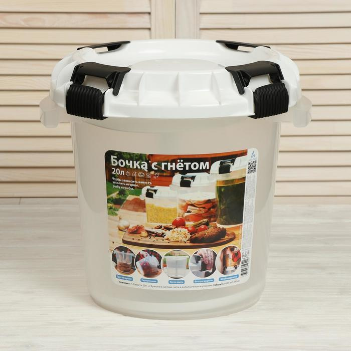Бочка пищевая, 20 л, с герметичной крышкой, с гнётом, Для солений 5238761