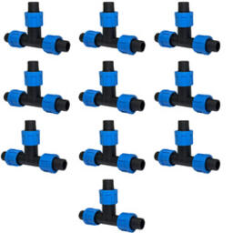 Тройник с зажимами для капельной ленты - 10 шт. Диаметр - 16 мм. Фитинги для капельного полива. STP/Troinik/10