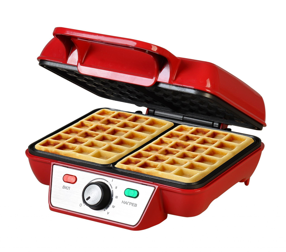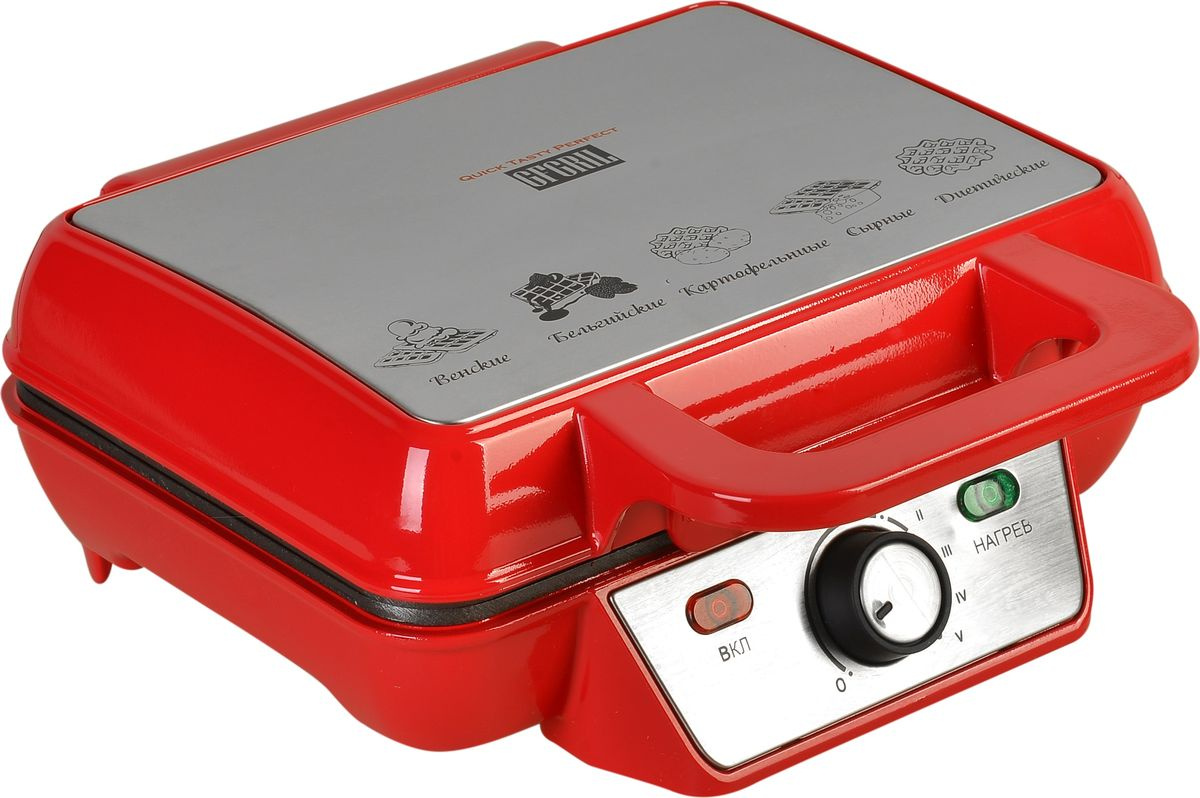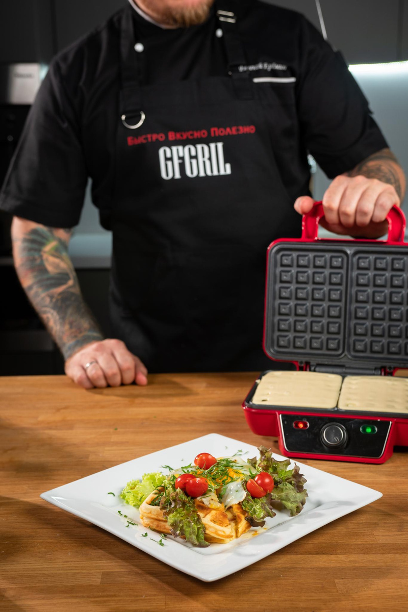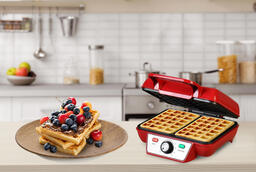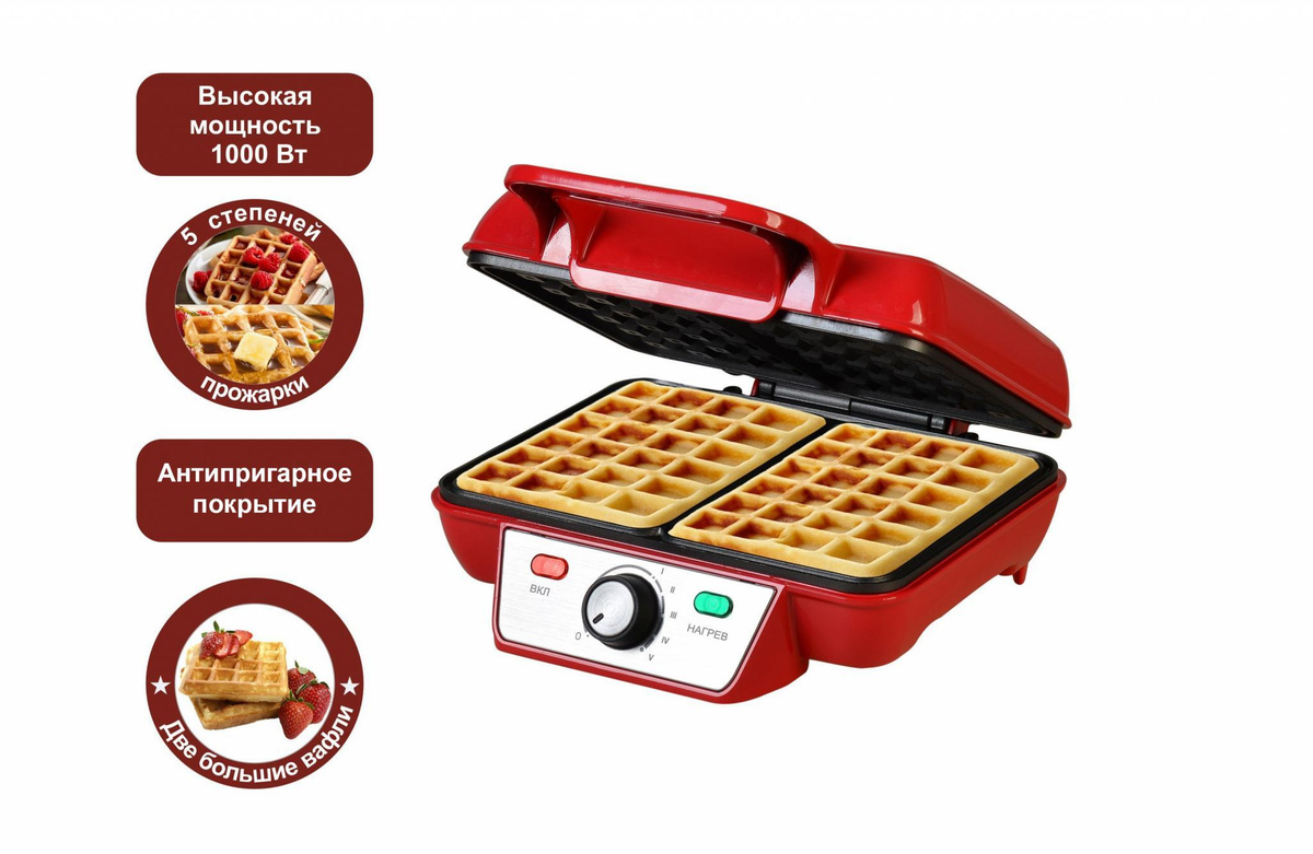 Вафельница GFgril Электровафельница GFW-015 Waffle Plus, вафли большого размера, антипригарное покрытие, регулятор t, красный
