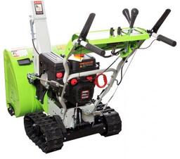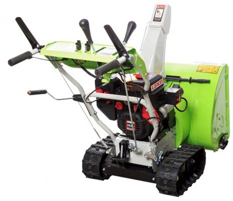 - Прочие особенности и свойства Снегоуборщик REDVERG RD-SB61/9TE 6667075 – мощная машина на гусеничном ходу, предназначена для уборки больших территорий как частных владений, так и территории предприятий, загородных пансионатов и других. Уникальная дистанционная джойстиковая система регулировки направления и дальности выброса снега с фиксацией выбранного положения, обеспечивает комфортный режим работы для оператора. Уникальная система переноса веса, применяемая на снегоуборщике с гусеничным приводом. Простым передвижением рычага оператор переносит центр тяжести снегоуборщика в одно из трех положений: уборка слежавшегося снега, нормальный режим, транспортировочный режим. Надёжная система передачи вращения с сектором и шестерней способствует плавности скольжения узлов в процессе регулировки направления выброса или дальности выброса снега. Механизм блокировки дифференциала гусениц с помощью блокировки рычага на рукоятках управления обеспечивает плавность манёвра при повороте в процессе работы без остановки. Преимущества REDVERG RD-SB61/9TE Система электрического запуска от розетки 220В - комфортный и беспроблемный запуск двигателя в сильные морозы Подогрев рукояток - комфортное управление Фара для работы в темное время суток Простое и доступное управление REDVERG RD-SB61/9TE Ограничительные башмаки защищают ковш от повреждений Металлический зубчатый шнек эффективно измельчает даже плотный снег