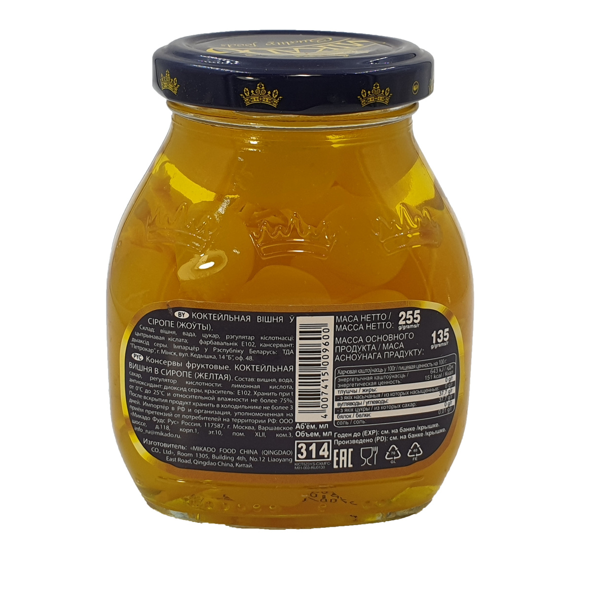 Вишня коктейльная ЖЕЛТАЯ с черенком "MIKADO", 314 мл