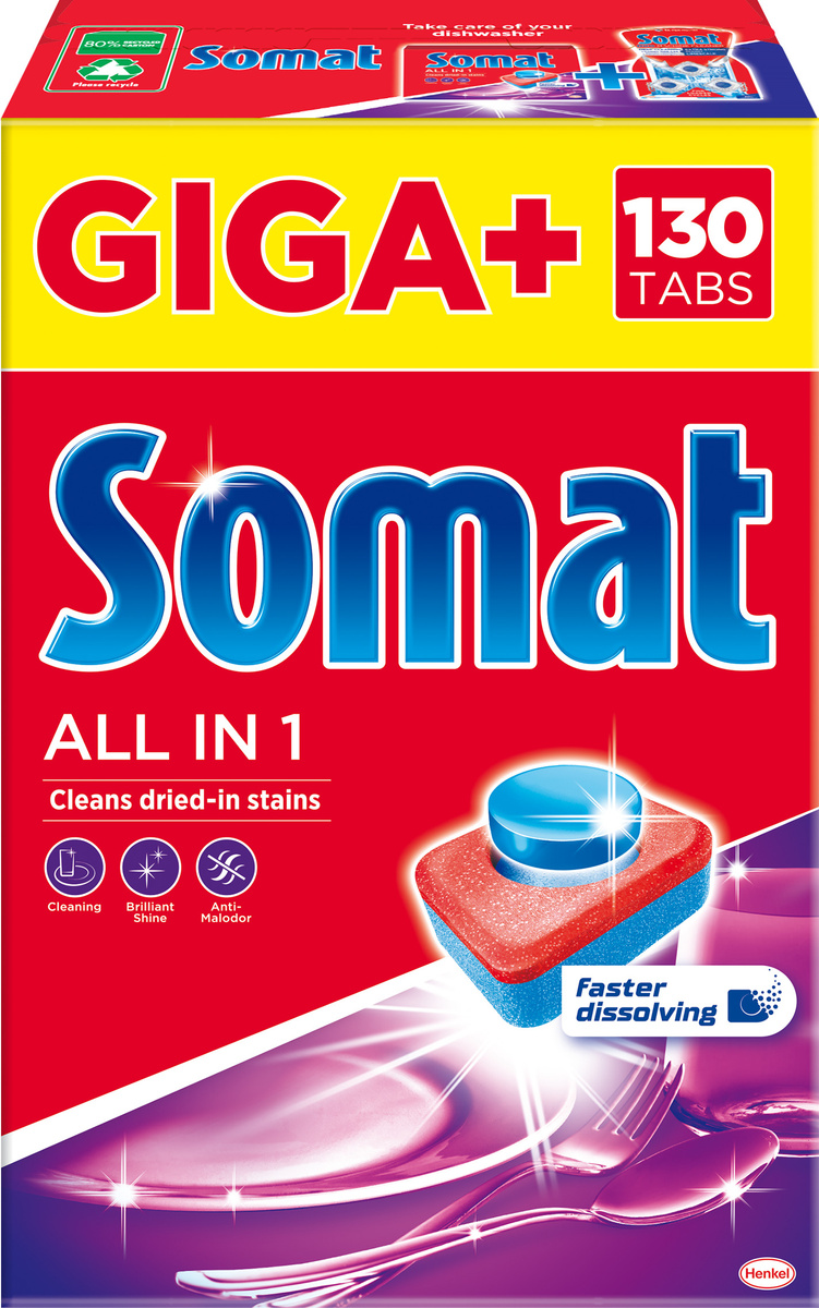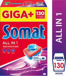 Таблетки для посудомоечной машины Somat All in 1, мультифункциональное средство для мытья посуды в посудомойке, 130 таблеток