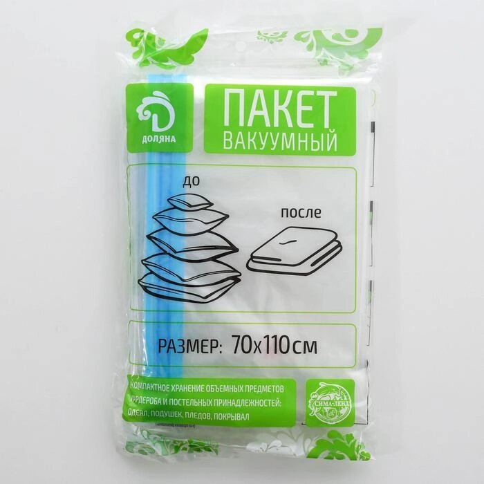 Вакуумный пакет для хранения вещей Доляна, 70x110 см, прозрачный