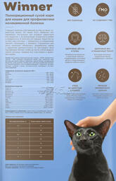 Сухой корм для кошек WINNER Профилактика мочекаменной болезни 0,4 кг (4630016235217) ‒ полнорационный сбалансированный корм для профилактики мочекаменной болезни. Одно из самых распространенных заболеваний у кошек — это мочекаменная болезнь. Чтобы предотвратить ее развитие, необходимо особенно внимательно относится к питанию животного. Корм Winner благотворно влияет на здоровье почек и мочевыводящих путей и препятствует образованию камней.
