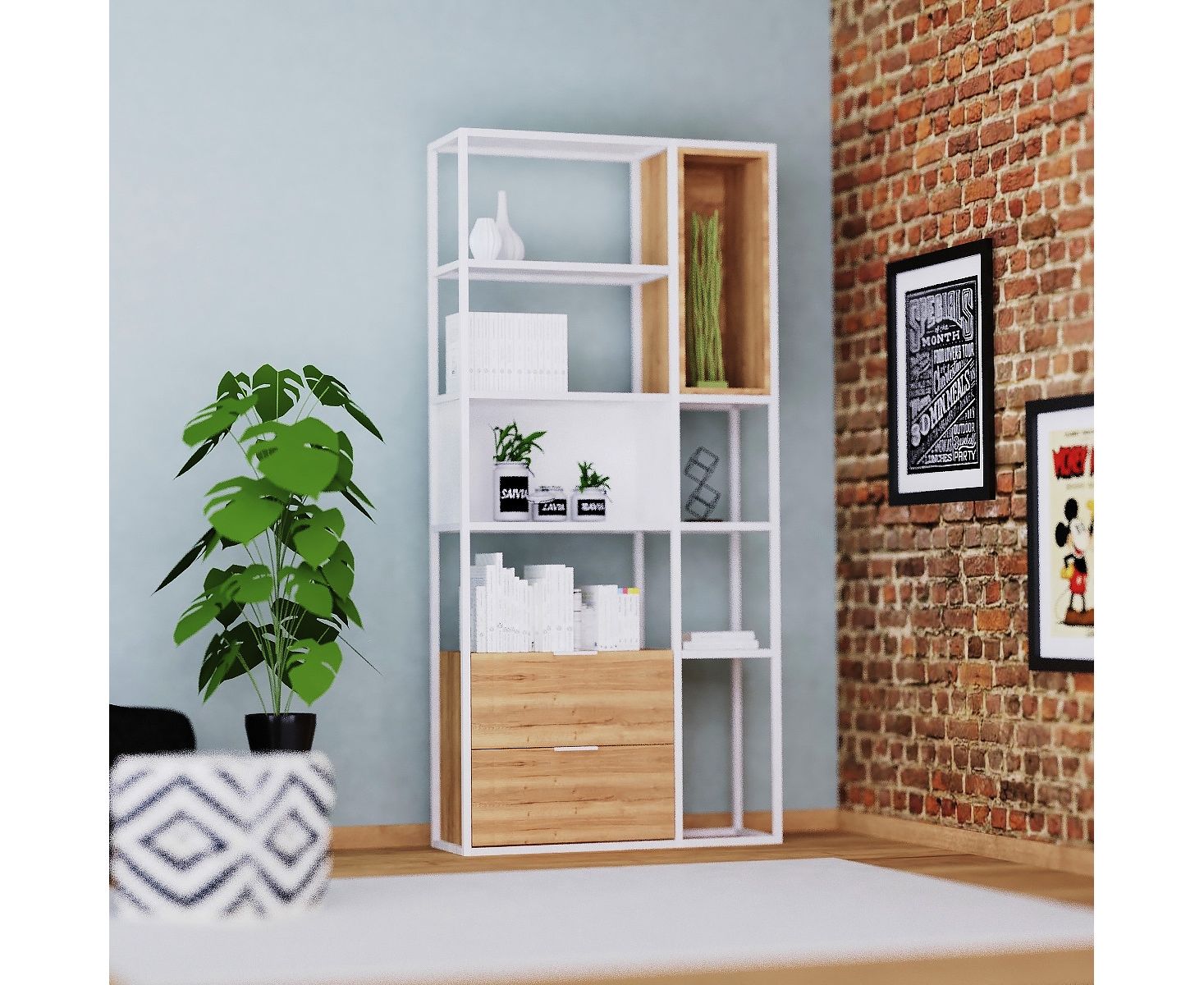 Стеллаж КВЕНТИН/white в стиле лофт Смотреть 360°- Нажмите, чтобы рассмотреть модель со всех сторон. Стеллаж КВЕНТИН серии LOFT выполнен из качественного ЛДСП. Стеллаж может быть выполнен в других цветовых решениях, с учетом вашего интерьера. Металлический каркас толщиной 20х20мм Размер: Д/Ш/В 90/30/190 см Цвета: ЛДСП - Золотистый дуб Металл - белый. Размер и цвет может меняться в зависимости от ваших предпочтений, звоните - сделаем! 2 закрытых ящика с доводчиками Используем только качественную, проверенную фурнитуру. Она прослужит вам долгие годы. Скрытые металлические ручки Матовые белые ручки сделаны из металла, как и каркас стеллажа. Минималистичный дизайн и скрытое крепление идеально подходит мебели лофт. Приятный матовый металл Окраска металла производится в камере полимеризации, что делает ее устойчивой к любым повреждениям.