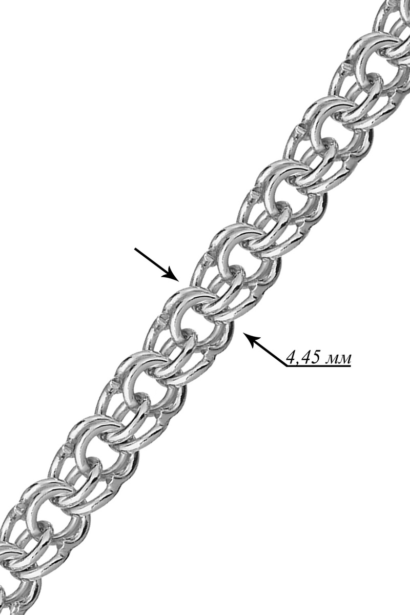 ТОПАЗ Цепочка родированная серебряная 925, "Гарибальди" / Без огранки, полновесная