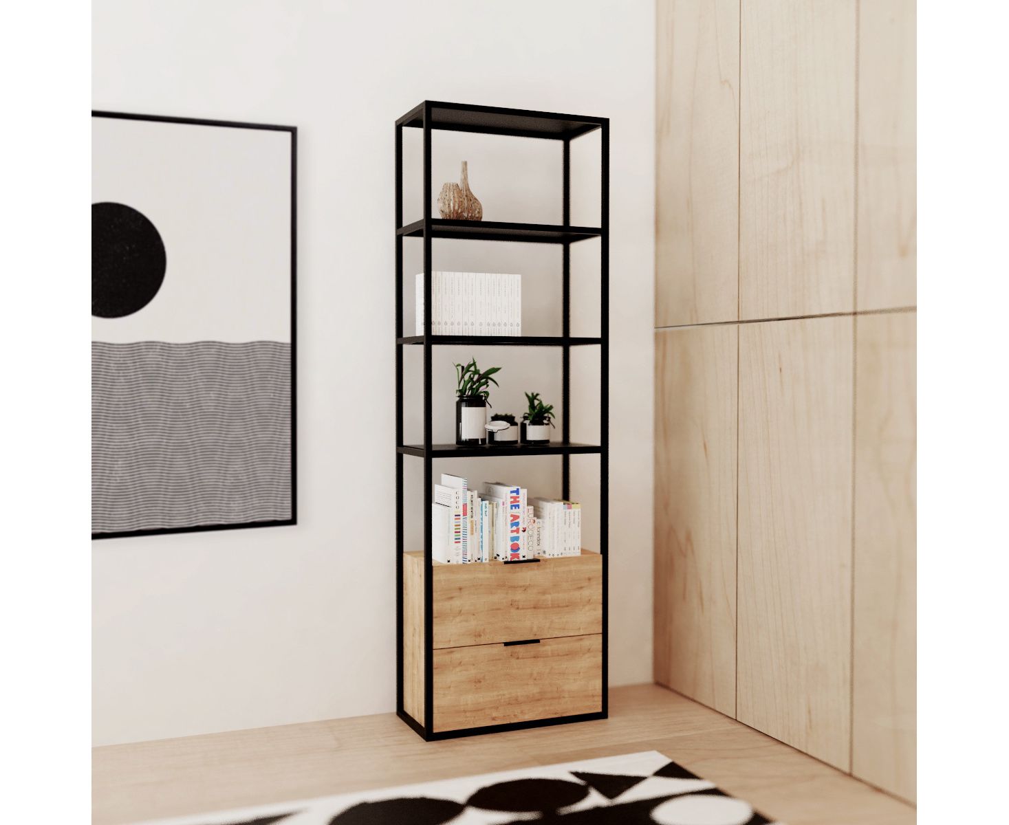 Стеллаж КВЕНТИН МИНИ/black в стиле лофт Стеллаж КВЕНТИН МИНИ серии LOFT выполнен из качественного ЛДСП. Стеллаж имеет 2 выдвижных ящика и 4 открытые полки. Стеллаж может быть выполнен в других цветовых решениях, с учетом вашего интерьера. Металлический каркас толщиной 20х20мм Размер: Д/Ш/В 60/30/190 см Цвета: ЛДСП - Золотистый дуб Металл - Черный Размер и цвет может меняться в зависимости от ваших предпочтений, звоните - сделаем!