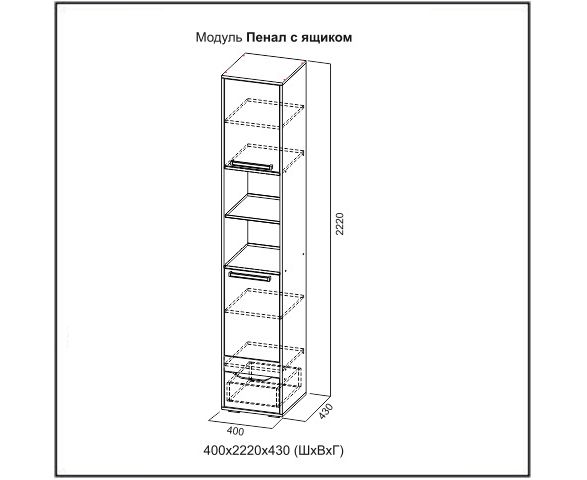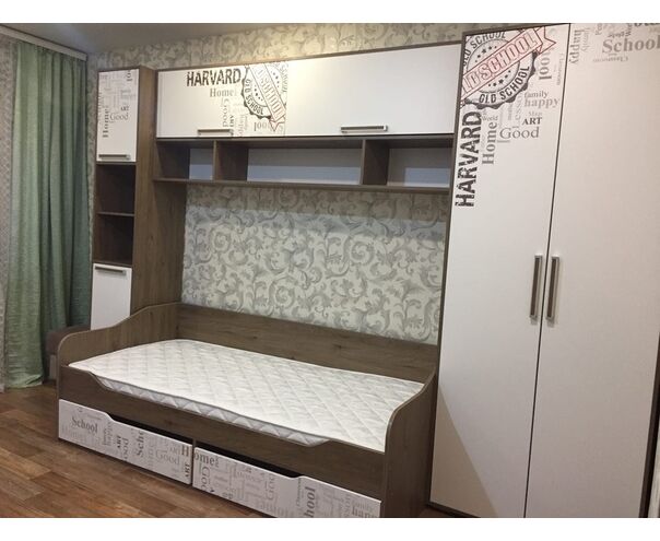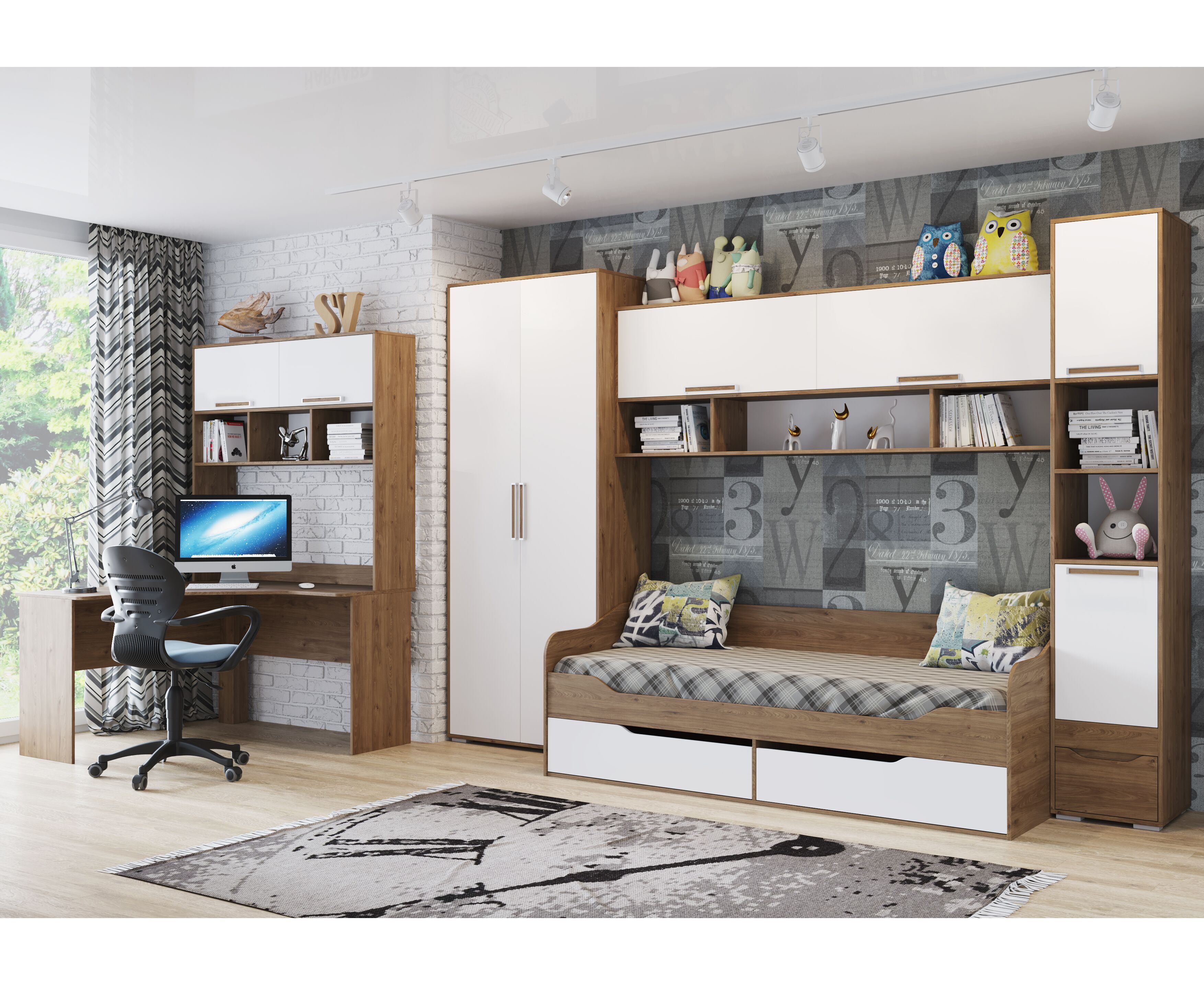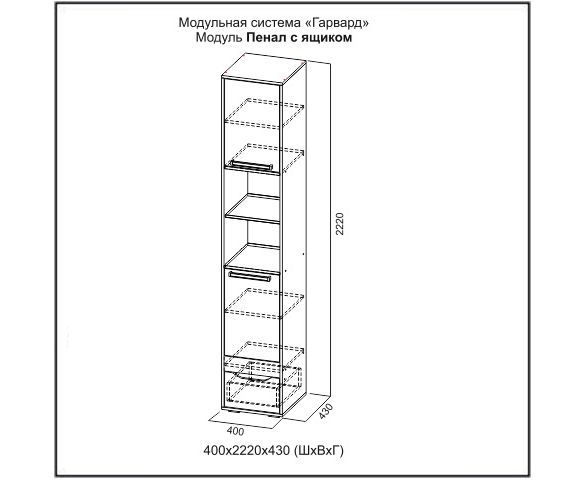 Мебель для бытовых и общественных помещений. Набор мебели для квартиры Модульная система "ГАРВАРД К" модуль Пенал с ящиком Гикори тёмный/Белый