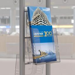 Вертикальная односторонняя подставка Attache «Лидер» предназначена для рекламных листовок и других материалов формата 1/3 А4. Изготовлена из прозрачного акрила методом литья. Размеры — 202×106×26 мм (высота, ширина, глубина). Подходит для размещения как на столе, так и на стене, предусмотрены крепежные отверстия. Есть возможность нанесения логотипа размером 3×10 см с помощью аппликации, шелкографии. Вес — 85 г.