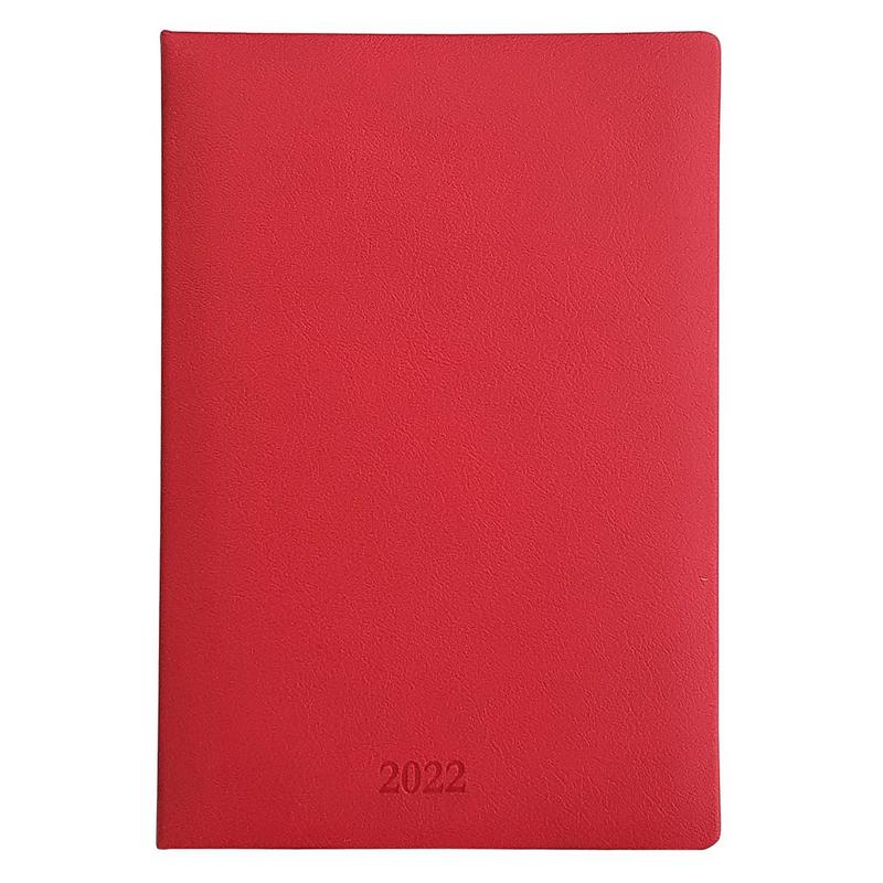 Ежедневник датированный на 2022 год Infolio из коллекции «Vienna» А5 формата (140×200 мм) в красном цвете и классическом дизайне, из которого убрали все лишнее — остались лишь идеальные линии и эстетика цвета.Твердая с поролоном обложка из матовой искусственной кожи с декоративным тиснением года имеет скругленные уголки.Датированный внутренний блок на ниткошвейном скреплении в линейку на 176 листов (352 страницы) — из высококачественной бумаги белого цвета плотностью 70 г/м² с прямыми уголками.В ежедневнике имеется информационный блок, содержащий разделы: личные данные, календарь на 2022-2023гг, карты мира и России, российские праздники, разница во времени между Москвой и городами России, международные единицы мер, планирование задач, важные даты.В ежедневнике также имеется одна удобная атласная закладка, которая поможет быстро найти нужный разворот.Возможно нанесение логотипа на обложку блинтовым тиснением или тиснением фольгой.