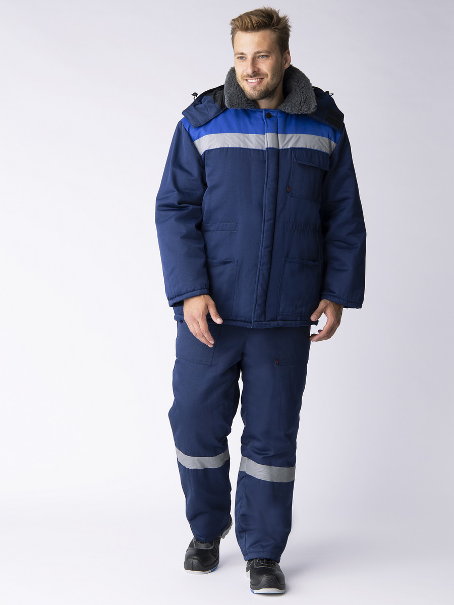 Спецодежда мужская. Костюм зимний Труженик-Ультра (тк. Смесовая, 210), брюки, темно-синий/васильковый
