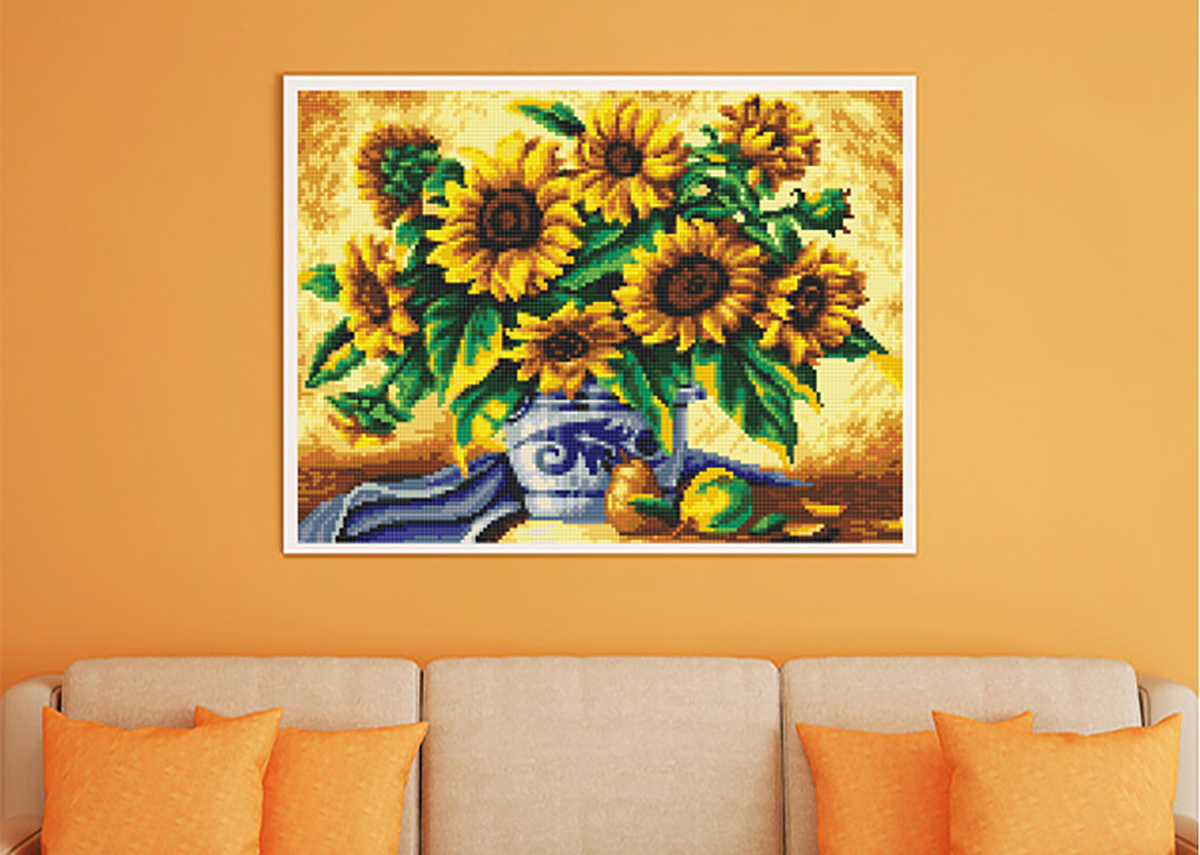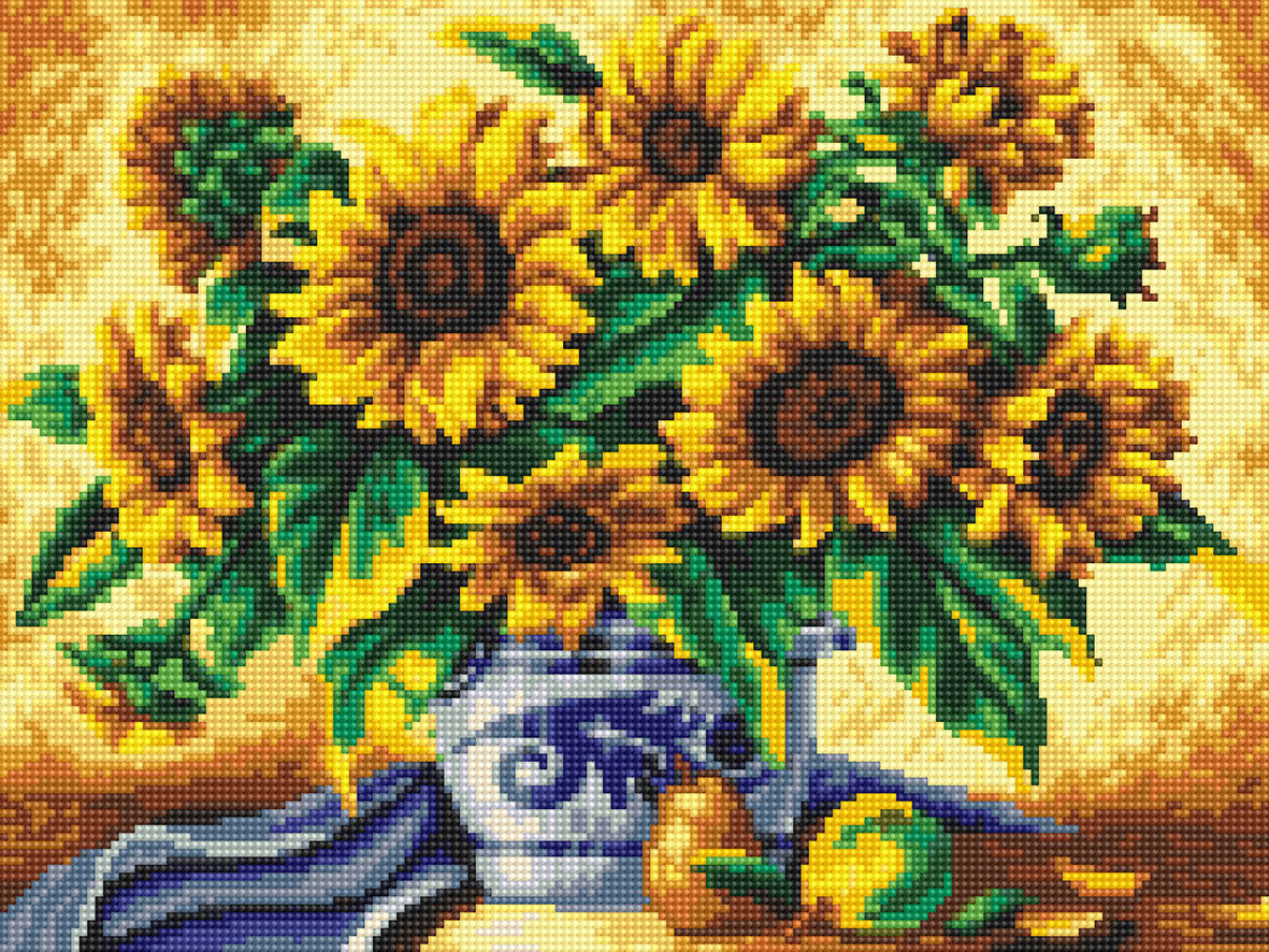 Алмазная мозаика Алмазное хобби "Желтые подсолнухи в синей вазе" 30х40