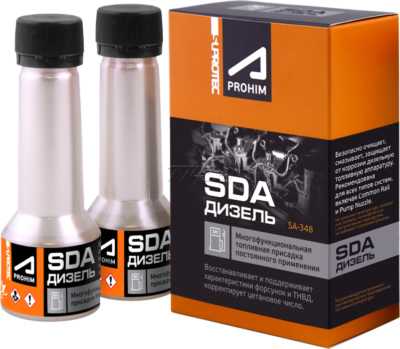 Присадка в дизельное топливо SUPROTEC A-Prohim SDA 100 мл (122882) предназначена для восстановления и поддержания рабочих характеристик дизельных топливных систем, включая системы Common Rail и «насос-форсунка». Присадка очищает (промывает), смазывает, защищает от коррозии форсунки и топливные насосы, поддерживая их исправность. Приводит цетановое число топлива к оптимальным значениям. Присадка для дизельного топлива «SDA» (расшифровывается как Suprotec Diesel Additive, произносится как «СДА») является средством постоянного применения и рекомендуется для добавления в топливо при каждой заправке автомобиля. Основная функция – очистка и предотвращение загрязнения топливной аппаратуры, продление ее ресурса. Состав присадки обеспечивает ряд действий в топливной аппаратуре:
