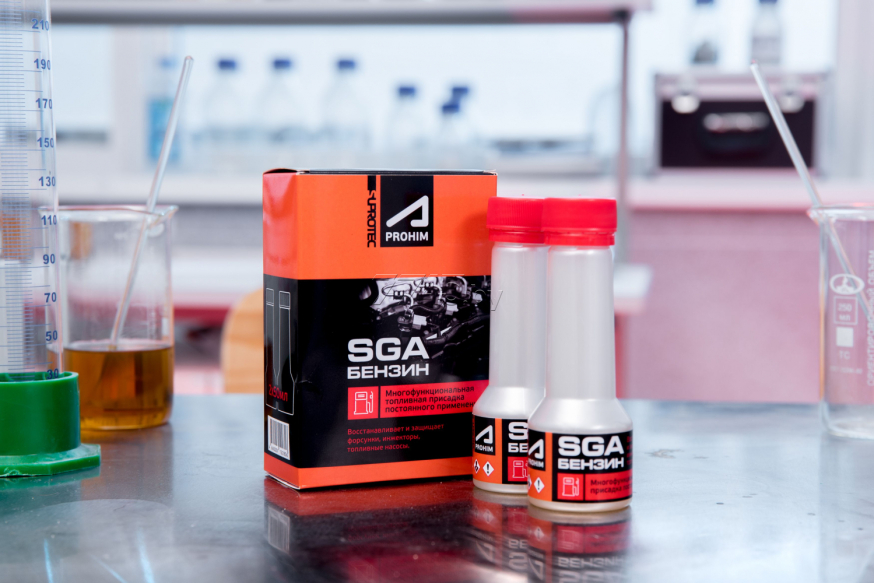 Присадка в бензин SUPROTEC A-Prohim SGA 100 мл (122875) мягко очищает топливную аппаратуру, смазывает ее, защищает от коррозии, предотвращает образование отложений. Это восстанавливает рабочие характеристики топливных насосов, инжекторов или форсунок, защищает их от износа, продлевает срок службы. Комплексное восстановление топливной аппаратуры улучшает впрыск, приводит к снижению расхода топлива, повышению динамики. Присадка в бензин СУПРОТЕК АПРОХИМ SGA («СГА») (расшифровывается как Suprotec Gasoline Additive) является средством постоянного применения и должна добавляться в топливо при каждой заправке. Постоянное применение присадки нормализует работу топливной аппараутры, улучшает впрыск топлива, что приводит к следующим потребительским эффектам: Снижение расхода топлива, Повышение мощности и динамики автомобиля, Выравнивание работы двигателя, Продление ресурса топливной аппаратуры, Продление ресурса турбокомпрессоров, каталитических нейтрализаторов и другой дополнительной аппаратуры, Снижение дымности отработавших газов и содержания в них вредных примесей.