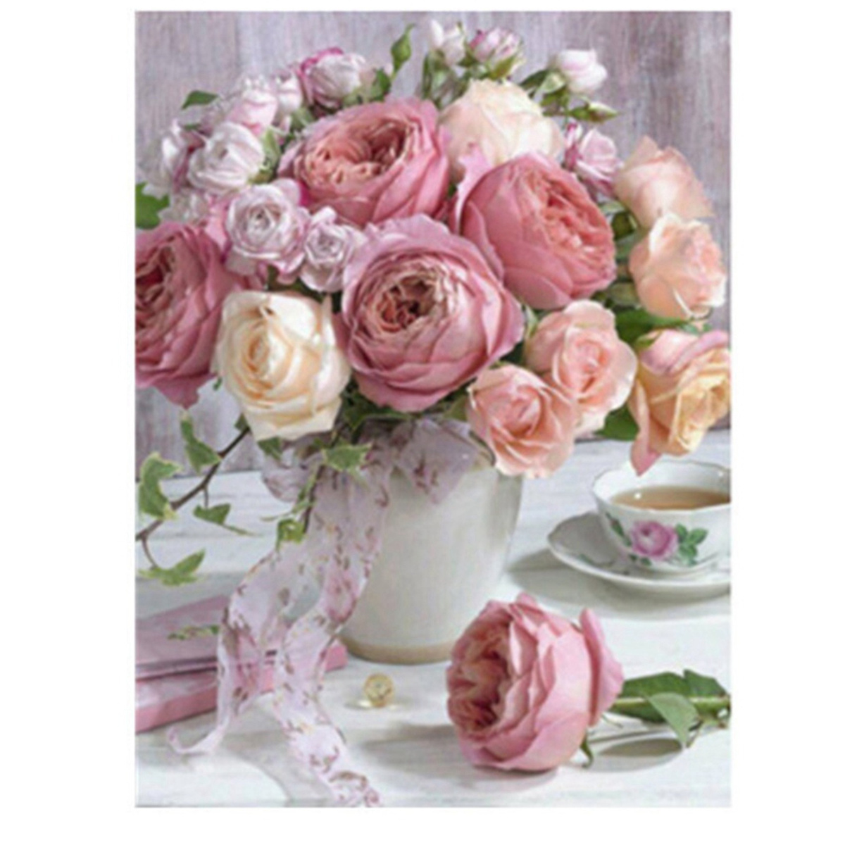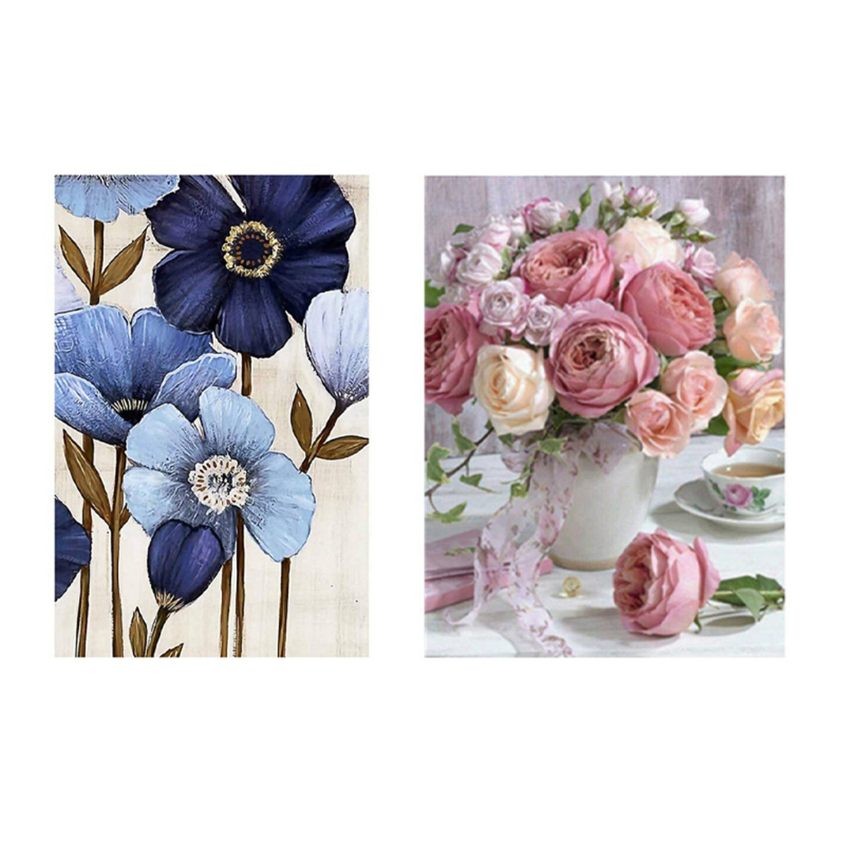 2Set Round Diamond Полный алмаз Алмазная живопись набор гостиной украшения росписи абстрактные голубые цветы и роза цветок SZ-OZK5-I710064884