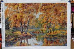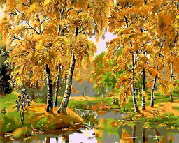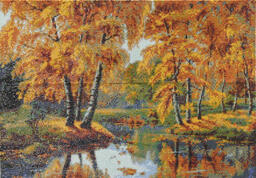 Алмазная мозаика полная выкладка квадратными стразами А-1311 Осенние березы 26х36см