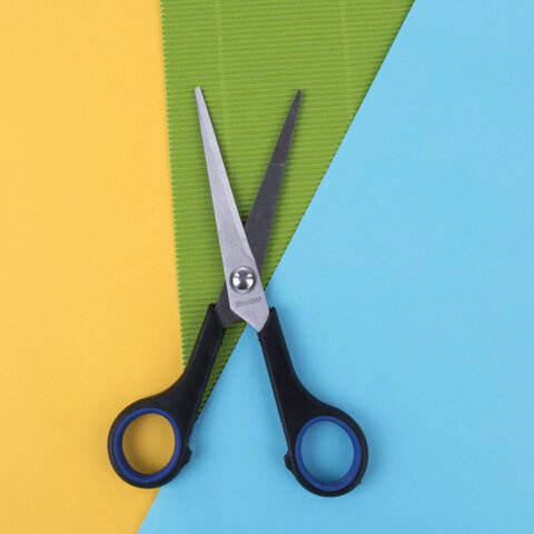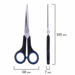 Ножницы BRAUBERG "Soft Grip", 165 мм, черно-синие, резиновые вставки, 3-х сторонняя заточка, 230761