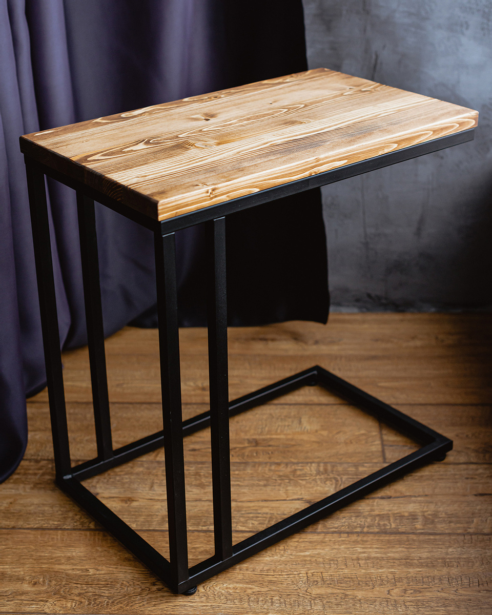 Журнальный стол, Приставной столик ilwi консольный с деревянной столешницей в стиле лофт для завтрака / для ноутбука / прикроватный / приставной / кофейный / для балкона / придиванный / для прихожей / приставной / для вина / чайный / маленький / кроватный, 59х35х62 см