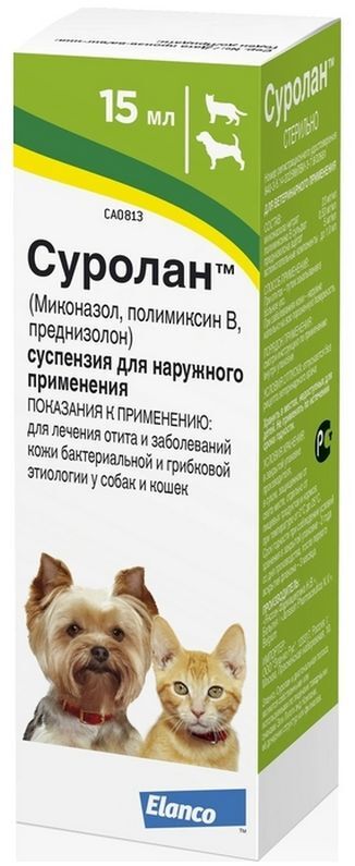 В комплексной терапии отодектоза (ушная чесотка), осложненного отитом, Суролан применяют в той же дозе по той же схеме.