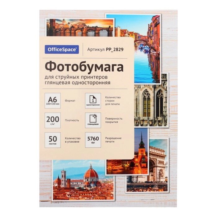 Фотобумага A6 (100 х 150) для струйных принтеров OfficeSpace, 200 г/м²50 листов, глянцевая, односторонняя