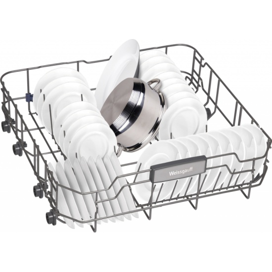 Полноразмерная и вместительная посудомоечная машина Weissgauff, оснащенная тремя корзинами, рассчитанная сразу на 14 комплектов посуды, обладает всеми необходимыми опциями для наилучшего результата после каждого рабочего цикла загрузки. Технологичные разбрызгиватели воды обеспечивают наилучшее качество мытья, а современная панель управления в стилистике Hi-Tech и добавит эстетики, присоединяющей свои элементы красоты в общий дизайн вашей кухни.Три корзины, позволяющие разместить отдельно от остальной посуды в верхнем лотке сразу все ложки, вилки и ножи, обеспечивая при этом их наилучшее мытьёДо 14 комплектов посуды одновременно вы можете расположить в данной посудомоечной машине, что позволяет справиться со всем необходимым объемом работы за один раз Половинная загрузка, благодаря которой вы сможете помыть даже самое небольшое количество посуды, не расходуя воду и электричество больше, чем это необходимо.Быстрый режим, позволит вам управиться еще оперативнее. Данный режим идеально экономит ваше время и подходит для той посуды, которая не требует сушкиРежим "Стекло", прекрасно подойдет для стеклянных стаканов, тарелок, бокалов, фужеров и прочего, обеспечивая одновременно бережное обращение с помещённой посудой и отсутствие разводов на стекле после завершения цикла мойкиРежим "90 минут", это гарантия великолепного результата за четко определенный заранее срок!Автопрограмма Blitz Wash поможет вам, в том случае если вы затрудняетесь с выбором программы мойки. Просто выберите авторежим, и посудомоечная машина, с помощью датчиков и сенсоров самостоятельно определит степень загрязненности вашей посуды и выберет оптимальный температурный режим и интенсивность мытьяИнтенсивная программа великолепно расправится даже с самыми сложными загрязнениями, гарантируя великолепный результат после каждого запуска!Экономичная программа подойдет для тех, кто хочет помыть посуду с низким уровнем загрязнений, не расходуя при этом излишне много воды!Стандартная программа подойдет для посуды среднего уровня загрязненности, в том числе, кастрюль, тарелок и бокалов!Таймер до 24 часов, который особенно удобен, если вы хотите начать цикл мытья в ночное время или во время вашего отсутствия. Всего лишь загрузите посуду в камеру, нажмите одну единственную кнопку - и всё остальное машина сделает сама!Полностью электронное управление, интуитивно понятное даже человеку, никогда ранее не работавшему с подобной техникой, сделает процесс запуска быстрым и лёгким.Возможность дозагрузки посуды, на начальном этапе мойки будет особенно удобна в случае, если вы забыли поместить в машину забытую на столе кастрюлю или тарелку!