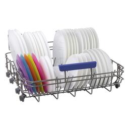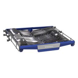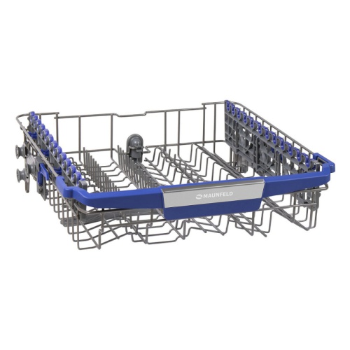 2 корзины для посуды (верхняя регулируемая по высоте с голубым пластиком), выдвижной лоток для столовых приборов